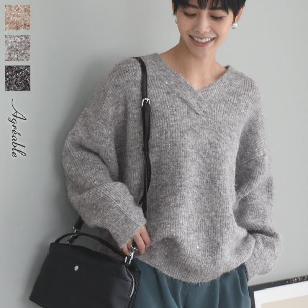 ⇒ふんわりやわらか 品よく華やぐラメニット/Agreable アグレアーブル