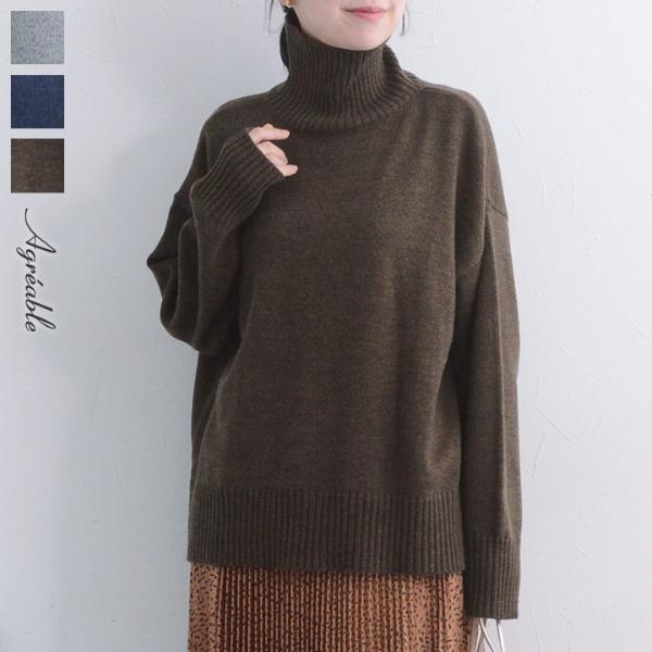 ⇒毛玉になりにくい ハイネックニット 静電気軽減テープ付/Agreable アグレアーブル【送料無料】