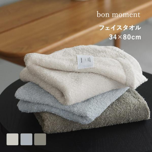 ⇒bon moment フェイスタオル ふんわり 吸水速乾 中空糸 時短タオル コットン100% 34×80cm