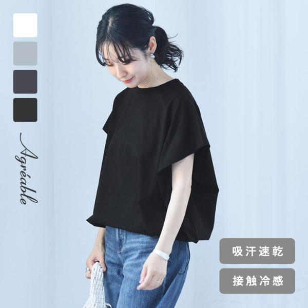 ⇒裾ドロストデザイン ドライタッチコットン フレンチスリーブ プルオーバー/Agreable アグレアーブル