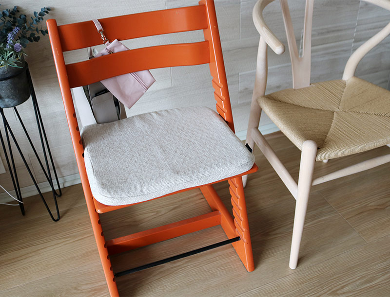 娘のストッケ卒業後は大人用のダイニングチェアに移動していたのですが、生地の痛みや毛玉が気になるように。