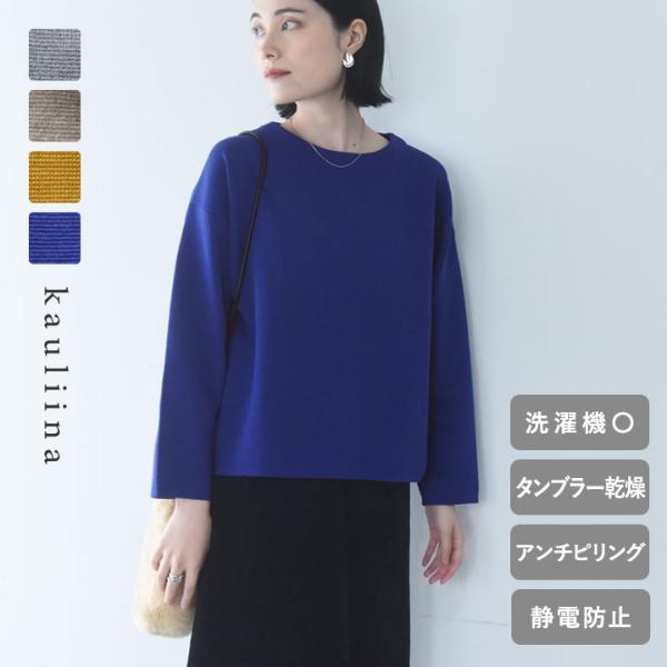 色で楽しむ、秋冬ニット。うれしい機能も満載!スタッフ4人の着こなしチェック ■ファッションのはなし スタッフのお気に入り 秋が深まる今日この頃、そろそろ本格的に冬支度をはじめなくては!と思っている方も多いのでないでしょうか。季節の移ろいとともに、アンジェのアイテムも冬仕様にシフトしています。 このたび登場した新作ニットは「日常使いしやすいニットが欲しいな、でもちょっと新鮮な色も気になる。」そんな方々にもぴったりな一着。 ブルーやマスタードなど鮮やかカラーも含めて、全4ラインナップをおなじみ4人で試着。ぜひ、ゆっくりチェックしてみてくださいね。 嬉しい機能たっぷり、重くないニット フラットな編み目で上品な印象の「ミラノリブニット」。今ではよく見かけるミラノリブですが、目が詰まっていて厚みあることでやや重めというイメージも。 こちらは、そのイメージを一新。特殊なストレッチ糸を一緒に編み立てることで柔らかくて軽やかな着心地を実現しています。毛足がなく厚みもほどほど、今の季節から春先まで活躍してくれますよ。 ■スタメン確定!4つの機能 ニットを買う時に気になるのが、【お手入れ方法や毛玉】について。可愛いけど洗うのが大変そう、毛玉になりやすそう~と想像して諦める、なんてこともあるあるですよね。 そんな心配もこのニットなら。4つの機能付きで毎日気軽にお使いいただけます。 ・洗濯機 洗いOK ・タンブル乾燥もOK ・アンチピリング加工で毛玉セーブ ・静電気防止加工付き カラーは全4色展開です。ブルーやマスタードなどの鮮やかカラーから秋冬らしい杢グレーやモカも。今の気分にしっくりくるカラーをお選びいただけます。 【着用アイテム】 軽やかな着心地 マシュマロミラノ ロングシーズン活躍する マルチ機能 シンプルニット 洗濯機・タンブル乾燥OK 毛玉になりにくい 静電防止/kauliina カウリーナ 印象さまざま、スタッフ4人の着回しレポ 早速ここからはスタッフの着こなしレポをご紹介。M・L・LLの3サイズ展開、どのサイズが良かったかスタッフの感想も聞いています。ぜひチェックしてみてくださいね。 01:スタッフ荻野(身長154cm) 私が選んだのは【Mサイズ】。やや小さめのサイズ感ということでしたが、ヒップが半分隠れるくらいでちょうどよかったです!ワンサイズ上げると袖が少し長くなって首元が開くので、着られてる感が出てしまいそう。ですが、重ね着をしっかりしたいときなどはゆったりめの「Lサイズ」でもいいのかもしれません。 ▲着用サイズ:Mサイズ、着用カラー:杢グレー(ラメ糸入り) 裾は出しても良さそうでしたが、ベルトと合わせてインスタイルに。私が着た杢グレーは実はややラメ糸が入っているんですよね。シンプルだけど表情感を楽しめるのもこのニットの魅力だと思いました。全体的にカジュアルにまとめたのですが、キレイめのアイテムと合わせるのも良さそう。 家でお洗濯ができる!という点も嬉しいですね。毛足が長いと引っ掛かったり、手洗いのみだと洗うのも面倒なのですが、これならお手入れらくらく。子どもとのお出掛けでも安心して着られます! 02:スタッフ白川(身長154cm) 私が選んだのは【Lサイズ】。私はもともとオーバーサイズのトップスが好きなので、身体のラインを拾いにくいLが好みでしたが、ジャストサイズで着たい方は「Mサイズ」でも良さそうだなと思います。 ▲着用サイズ:Lサイズ、着用カラー:ブルー 大きめサイズを選ぶと袖が長すぎる…といつもジレンマがあるのですが、こちらは手の甲に少しかかるくらいで気になりませんでした!今回、鮮やかなブルーを着てみたのですがこの色合いも私好み。秋冬はダークトーンになりがち、という方にもおすすめしたいカラーです。 トップスが色鮮やかなので、他のアイテムはシックにまとめてみました。スニーカー合わせなのでキレイめカジュアルですが、パンプスなど合わせればお仕事スタイルが完成しそう。合わせるアイテムによって着こなしの幅が広がりそうだなと思います! 03:スタッフ寺山(身長158cm) 私が選んだのは【Mサイズ】。サイズ感は小さすぎず大きすぎず、ぴったりでした。インでもアウトでもどちらでもバランスよく着られたので、ボトムスによって変えるのが良さそう。今回はAラインのスカートと合わせましたが、どちらでもしっくりきました。 ▲着用サイズ:Mサイズ、着用カラー:マスタード そして今回私が惹かれたのが、このマスタード色。秋冬はどうしても茶色やカーキなどに落ち着きがちなので、これくらいパッと明るい色合いを選んで気分を上げたいですね。イエローよりやや渋みのある色合いなので大人世代も選びやすいと思います。 同じニットなのに、他のスタッフが着ているとまた印象が違って、合わせるアイテムによって色々と着こなしを楽しめるんだなと実感。また、ニットを買うときの懸念点(お手入れ方法など)を上手くクリアしているので、今季のスタメンになってくれ