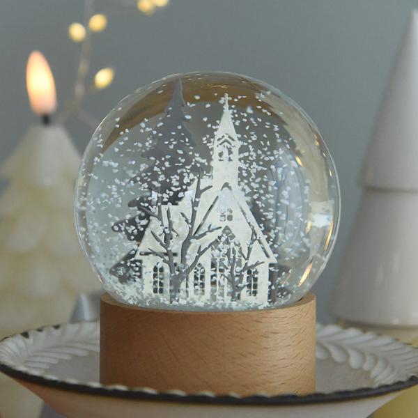 クリスマスシーズンのみならず、楽しめるインテリアとして人気のスノードーム。こちらは、教会やもみの木のある静かな街に雪が降る景色を楽しめるスノードームです。