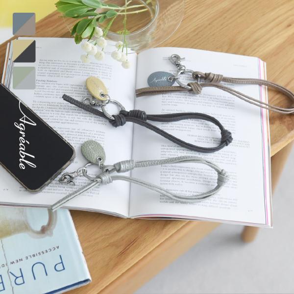Agreable|スマホの落下防止に 上品に持てる 牛革 スマホストラップ」 です。