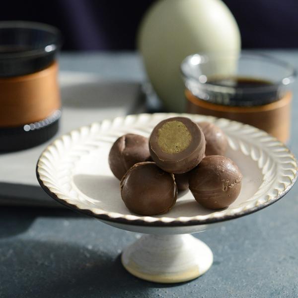 ドライデーツとカカオ、そしてアーモンドを一緒に混ぜたボール型チョコに、ダークチョコレートをコーティング。 1粒で満足感たっぷりのチョコスナックが冬季限定で登場!
