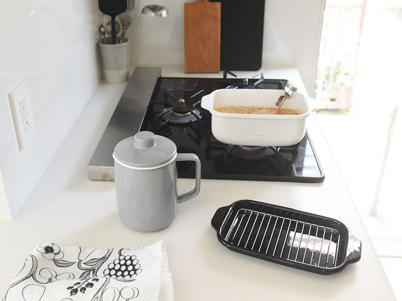 揚げ物鍋らしからぬ、四角い形で人気の「富士ホーローの天ぷら鍋」。収納のしやすさはもちろん、「使いやすさが全然違う!」と揚...
