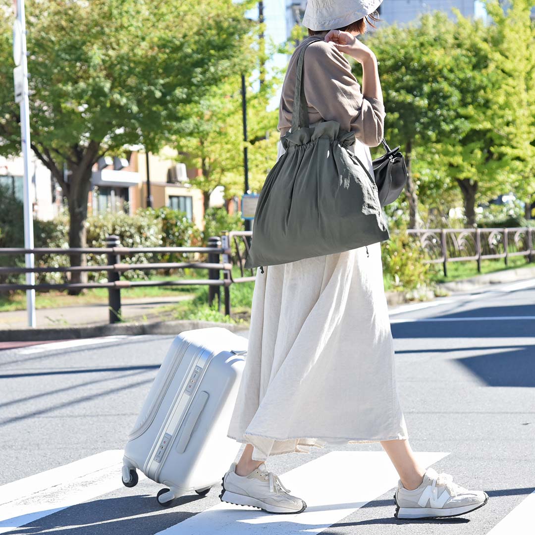 旅行のお供バッグとして人気の「bon moment 旅上手になれる 巾着サブバッグ」。部屋から大浴場への移動、ホテルや旅...
