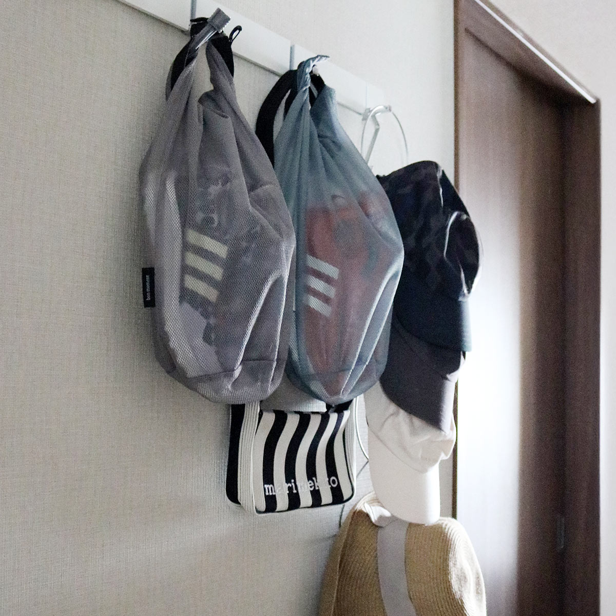 旅行の履きかえ靴を入れたり、ジム用シューズの持ち運びにも便利な「サイズ調整ができるシューズケース」。新登場したメッシュ風...