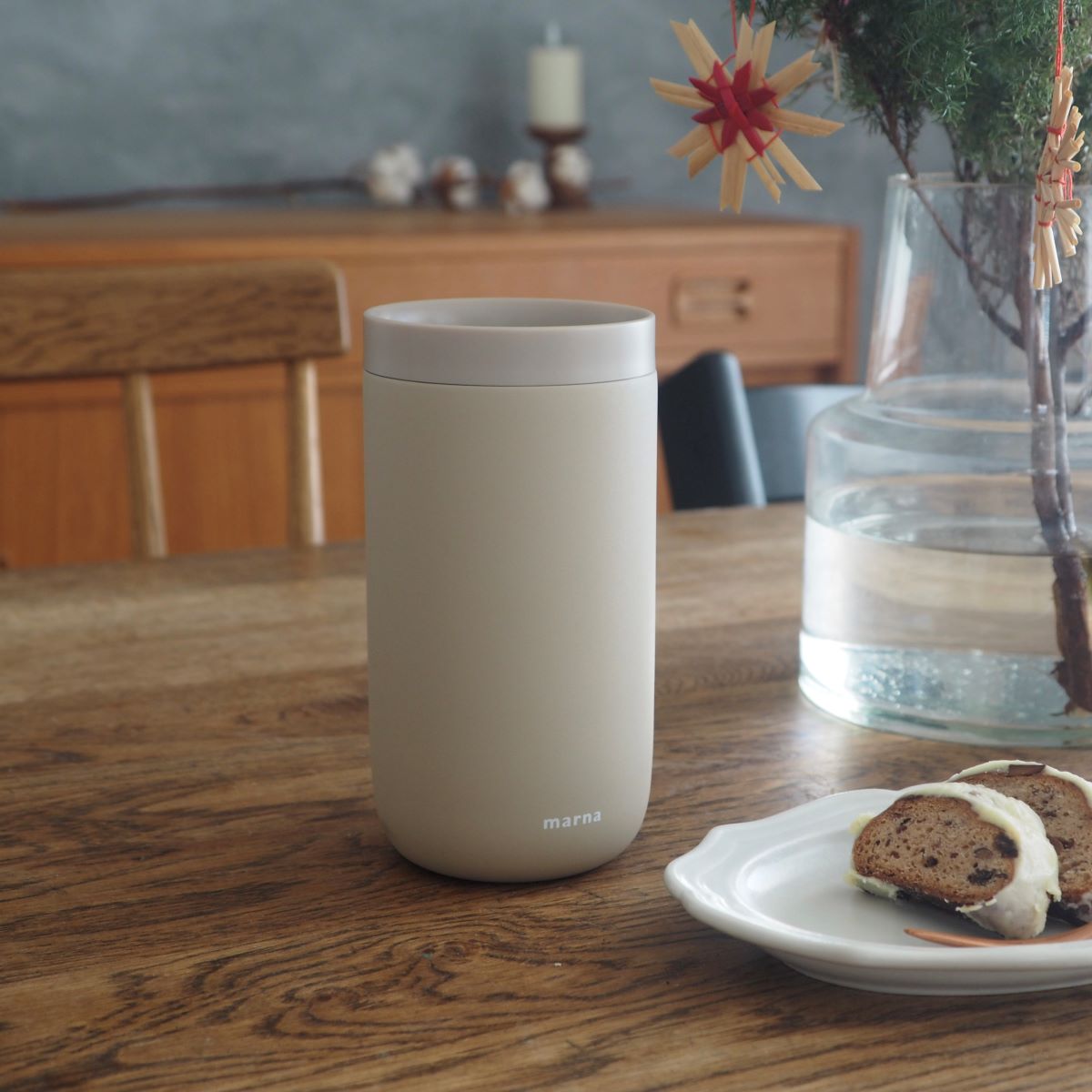 放置したままでも冷たさ・温かさをキープ。ホコリなどの衛生面も気にせず飲み物を楽しめる「marna(マーナ)タンブラー(3...