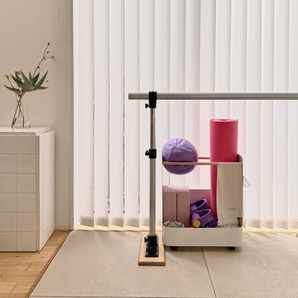 ヨガマット、フォームローラー、マッサージローラー、ダンベル、チューブ。持っているけれど、あちこちに散らばって、しばらくト...
