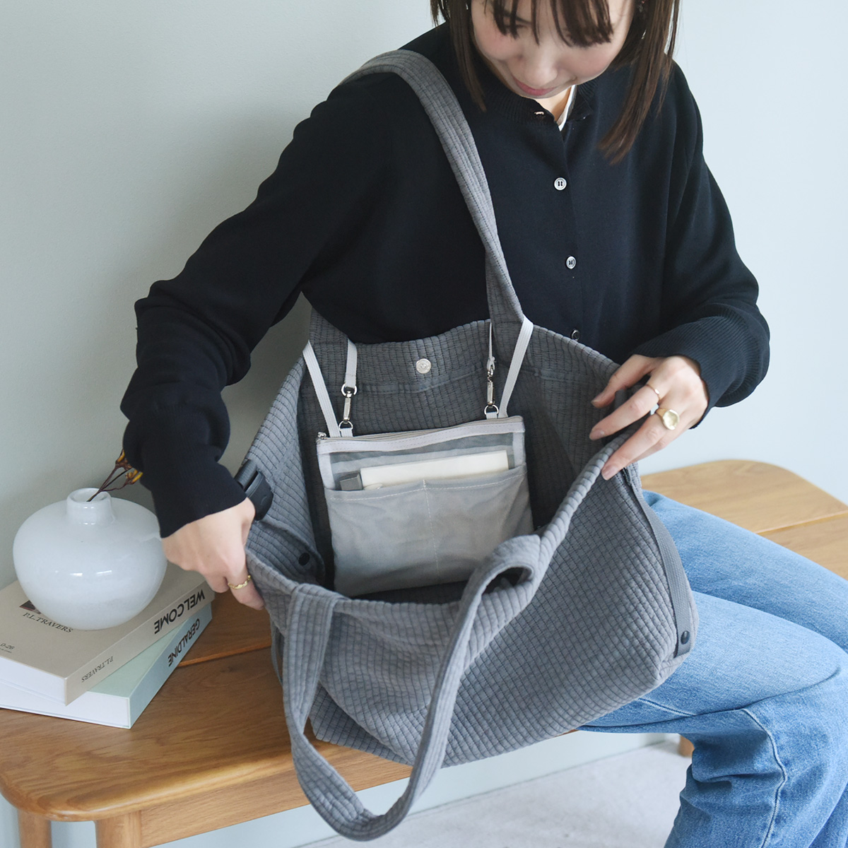 中身がごっそり入るバッグインバッグほどのボリュームではなく、ペタンコですっきりとした「内ポケット」をバッグ内に増設できる...