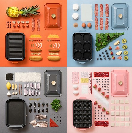 左上から時計回りに:・レトロオレンジ、アッシュブルー、シェルピンク、チャコールグレーホーロー鍋を彷彿とさせる「BRUNO...