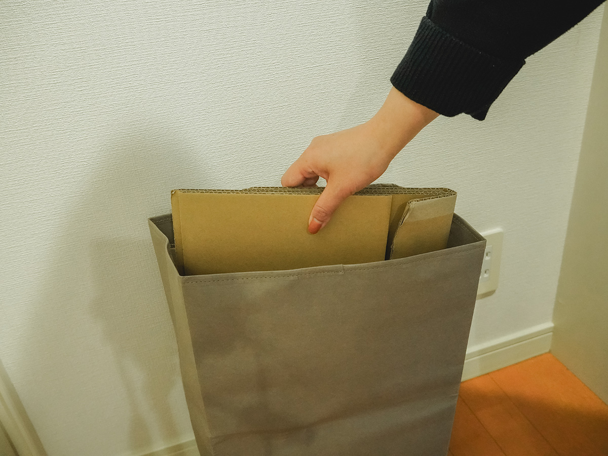 わが家では通販で出た小さな段ボールを、玄関に置いて外出時に処分するようにしているのですが、バタバタしていると段ボールが玄...