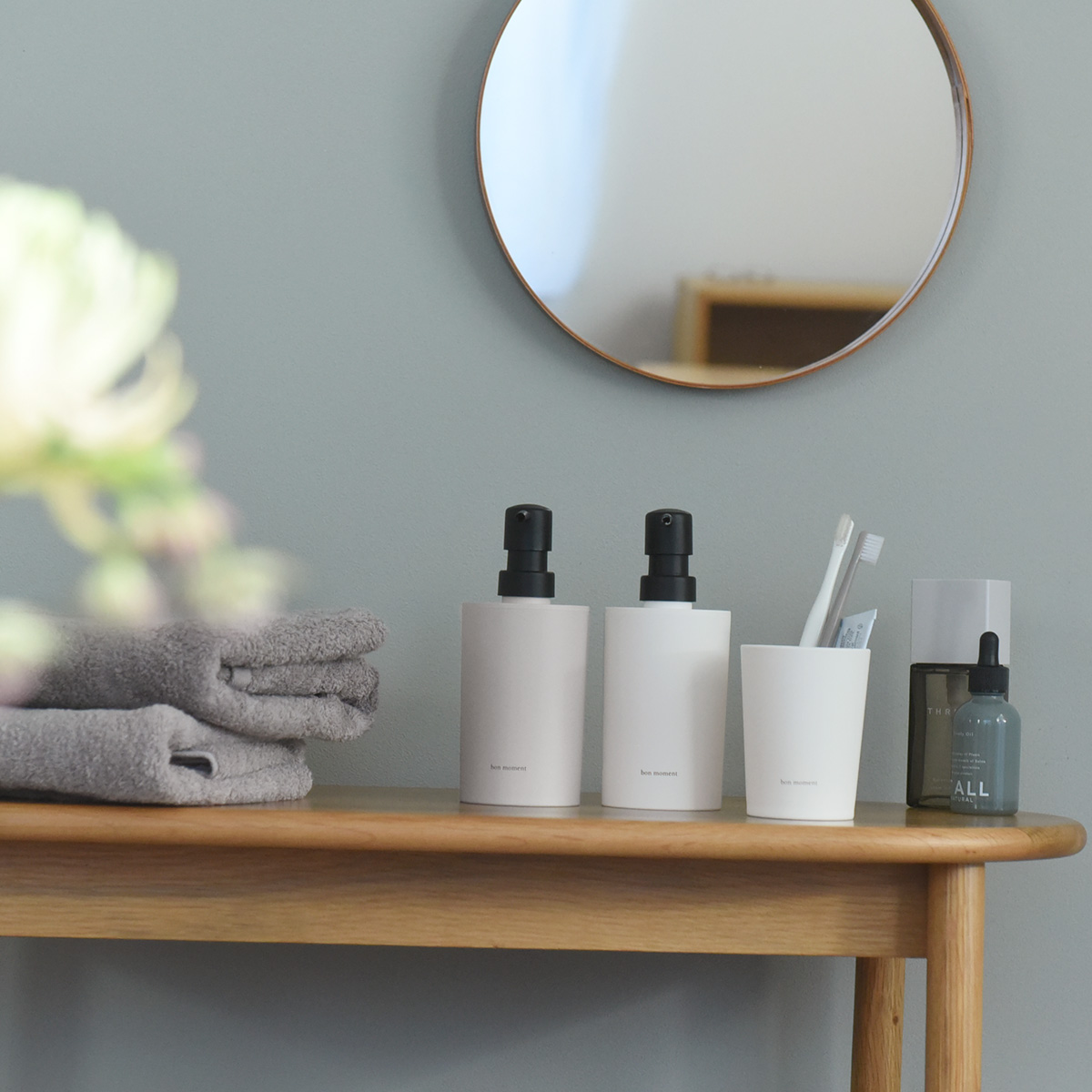 1日に何回も使う泡ハンドソープ。帰宅後のうがいや歯磨きに使うコップ。市販のボトルや使い込んだものをそのまま並べていると、...