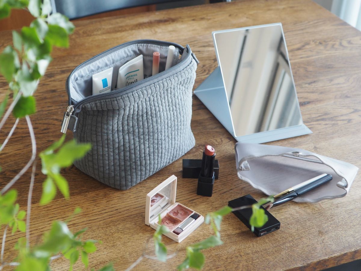 普段のお出かけに持ち歩いてるリップや目薬、タブレットやポケットティッシュ。小さめのがま口ポーチにまとめて収納しているので...