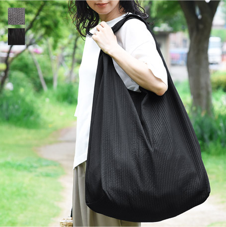 bon moment(ボンモマン)の「マチの大きなエコバッグシリーズ」は中に入れるものが滑りにくい、綿64%、アクリル36%素材。