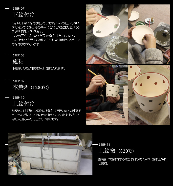 「九谷青窯」の器は、従来の九谷焼の伝統的な技術を活かしながらも一線を画し、全国から集まった十数名の若き陶工さんたちが、自らろくろを回し、手描きで絵付けをした、身近に使えるものばかり。