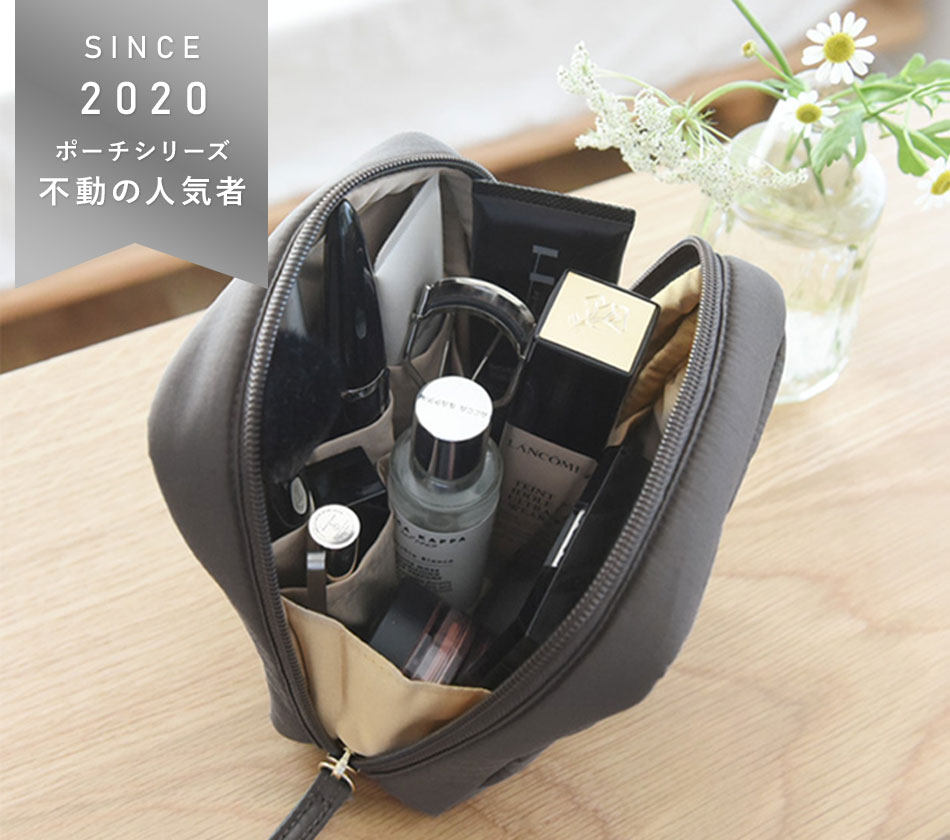 一軍コスメ+αが入る自立タイプ。アンジェの元祖モデルに縦型スリム、パタンと開いて取り出しやすさ◎のポーチまで。どれも整頓上手になれるポーチです。