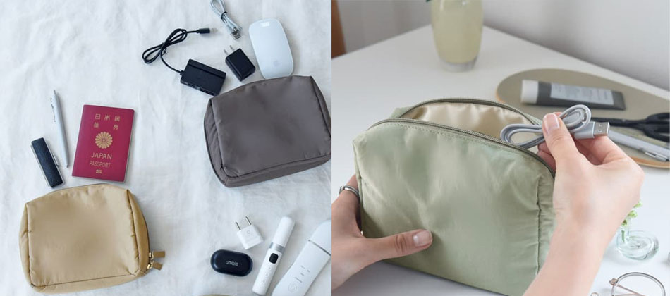 大きさや形もさまざまなガジェット類をすっきり入れて持ち歩く、ガジェットポーチ。持ち歩くモノによって選べるS&Mの2サイズ展開。