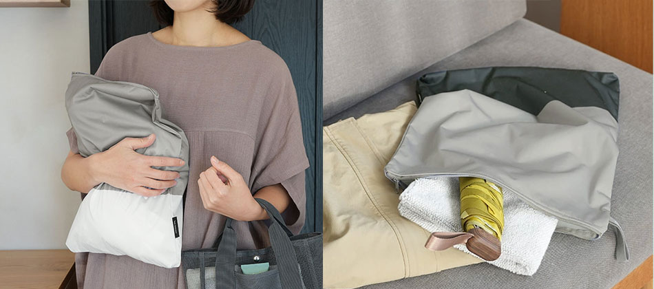 海やプール、じゃぶじゃぶ池での水遊び、旅行にヨガジムなど活躍シーンは無限大。濡れた物はとりあえずココに放り込めばOK、一個あると頼れるアイテムです。