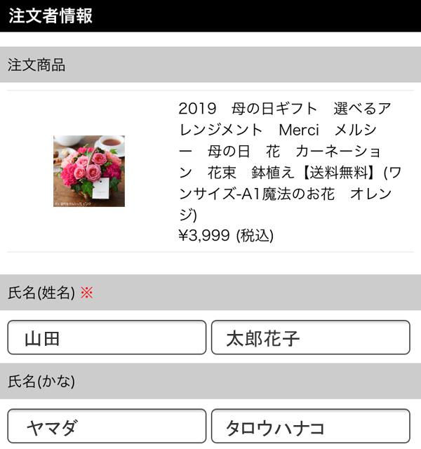 「夫婦の連名で発送して欲しい!」という場合など、「ご注文者様以外のお名前」を送り主にしたい時には、下記の方法で、ご注文者様名を変更していただけます。