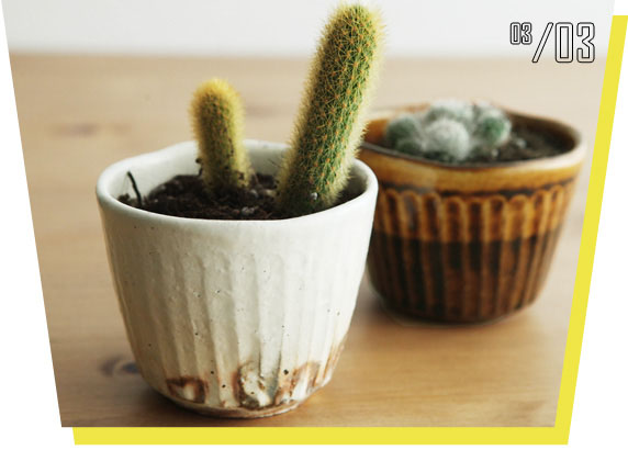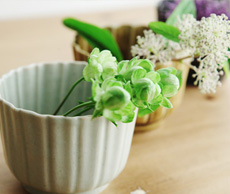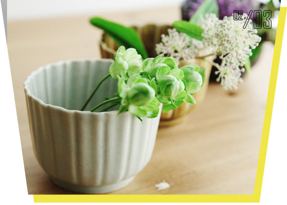 花器として使えば、 ゆったりと広い口が優しくお花を支え、 優雅な印象に。 苔山の鉢としても活躍します。
