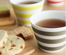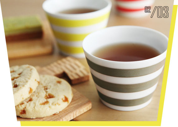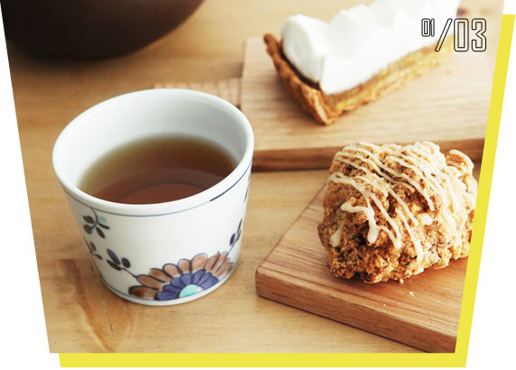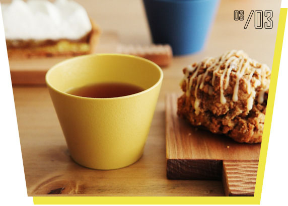 広口でコーヒーや紅茶の香りも 存分に楽しめるそば猪口を、 ケーキに添えて和カフェ風に コーディネート。