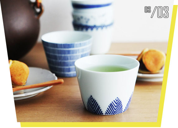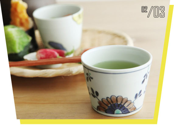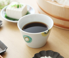 日本茶をいただくのにも、 ちょうど良いカタチのそば猪口。 陶器の風合いもまた、 日本茶とマッチします。