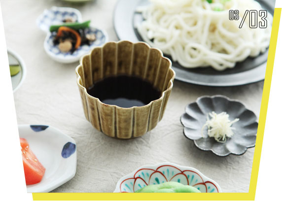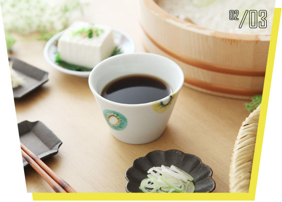 古くから親しまれている 「蕎麦つゆのうつわ」としての用途は、 そば猪口の最もスタンダードな使い方。