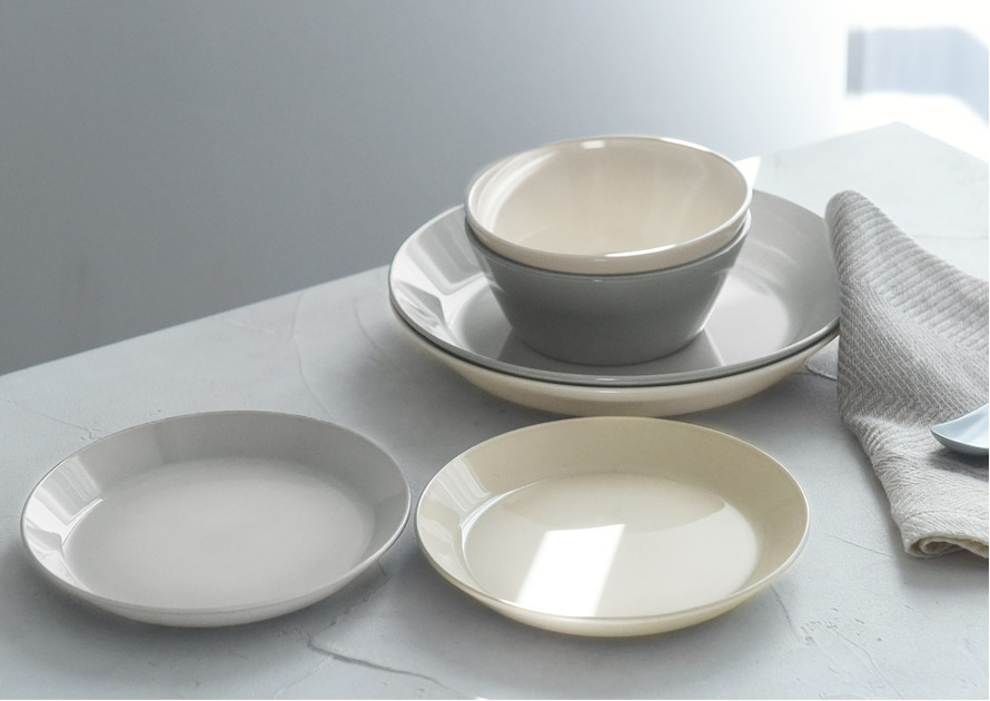 シンプルカラーと無駄のないかたちで仕上げた「bon momentの食卓シリーズ」。